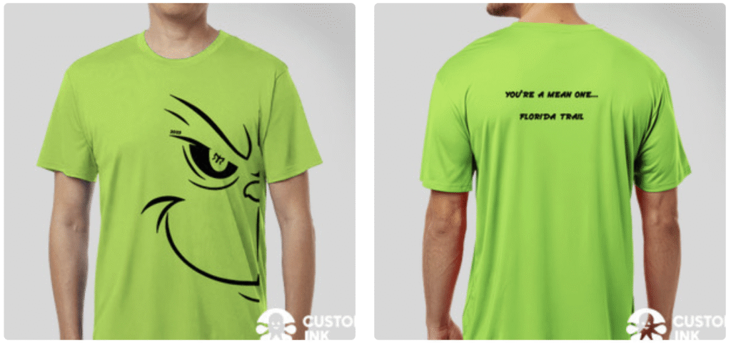 The front features the iconic Grinch smirk (the universal face of “I signed up for this voluntarily?”), stamped with our 2025 mark of glory. The back reads: “You’re a mean one… Florida Trail” — because nothing says team pride like passive-aggressive poetry in motion.